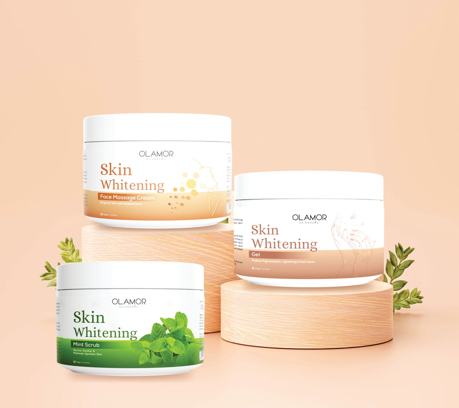 The Skin Whitening series features a mask, mint scrub, and face massage cream that work together to brighten and even out skin tone while reducing the appearance of dark spots and hyperpigmentation. The mint scrub provides gentle exfoliation while the massage cream deeply moisturizes the skin, leaving it feeling soft and refreshed. Use regularly to achieve a brighter and more youthful complexion.