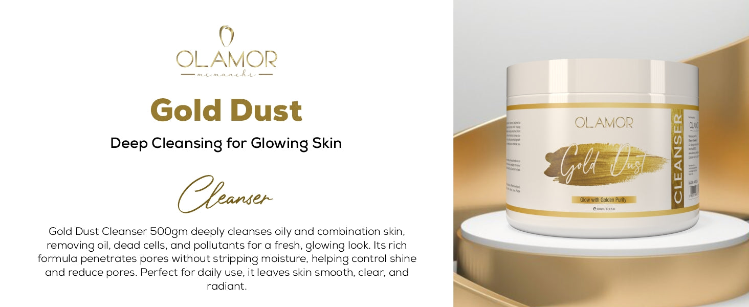 The Gold Dust Cleanser 500gm is your ultimate skincare solution for achieving a fresh, glowing complexion. Refresh your skin with the luxurious power of Gold Dust Cleanser, specially formulated to deliver a deep yet gentle cleanse. Designed to target excess oil, dirt, and environmental impurities, this advanced formula purifies your pores while maintaining your skin’s natural moisture balance. Cleanser and let your skin shine from within.