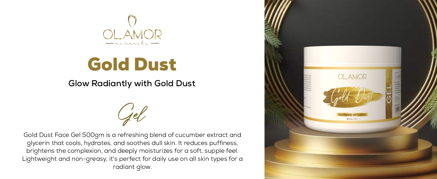 Unlock the secret to radiant, healthy skin with the Gold Dust Face Gel 500gm – a refreshing fusion of cucumber extract and glycerin designed to bring life back to dull, tired skin. This lightweight, fast-absorbing gel delivers a cooling burst of hydration while nourishing your skin from within. Perfect for everyday use, it works wonders to calm irritated skin, reduce puffiness, and give your face a fresh, dewy glow.