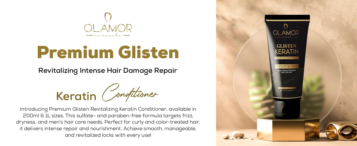 ✨Introducing Premium Glisten Revitalizing Intense Hair Damage Repair Keratin Conditioner - available in 200ml & 1L sizes. This sulfate-free and paraben-free keratin hair conditioner is meticulously crafted to address a variety of hair concerns, including frizzy hair, dryness, and the unique needs of men's hair care routines. Our conditioner is specially formulated for curly hair types and is also ideal for color-treated hair.✨